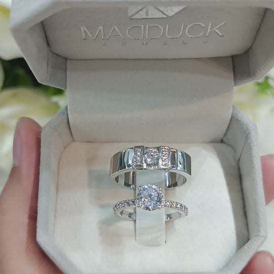 Madduckjewels แหวนเงินแท้ เพชร CZ ชุบโรเดียม RG2101-RG2203